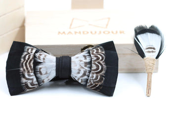 Sold out - San Antonio Feather Bow Tie & Pin Set: Elegant Wedding Accessory for Groom & Groomsmen